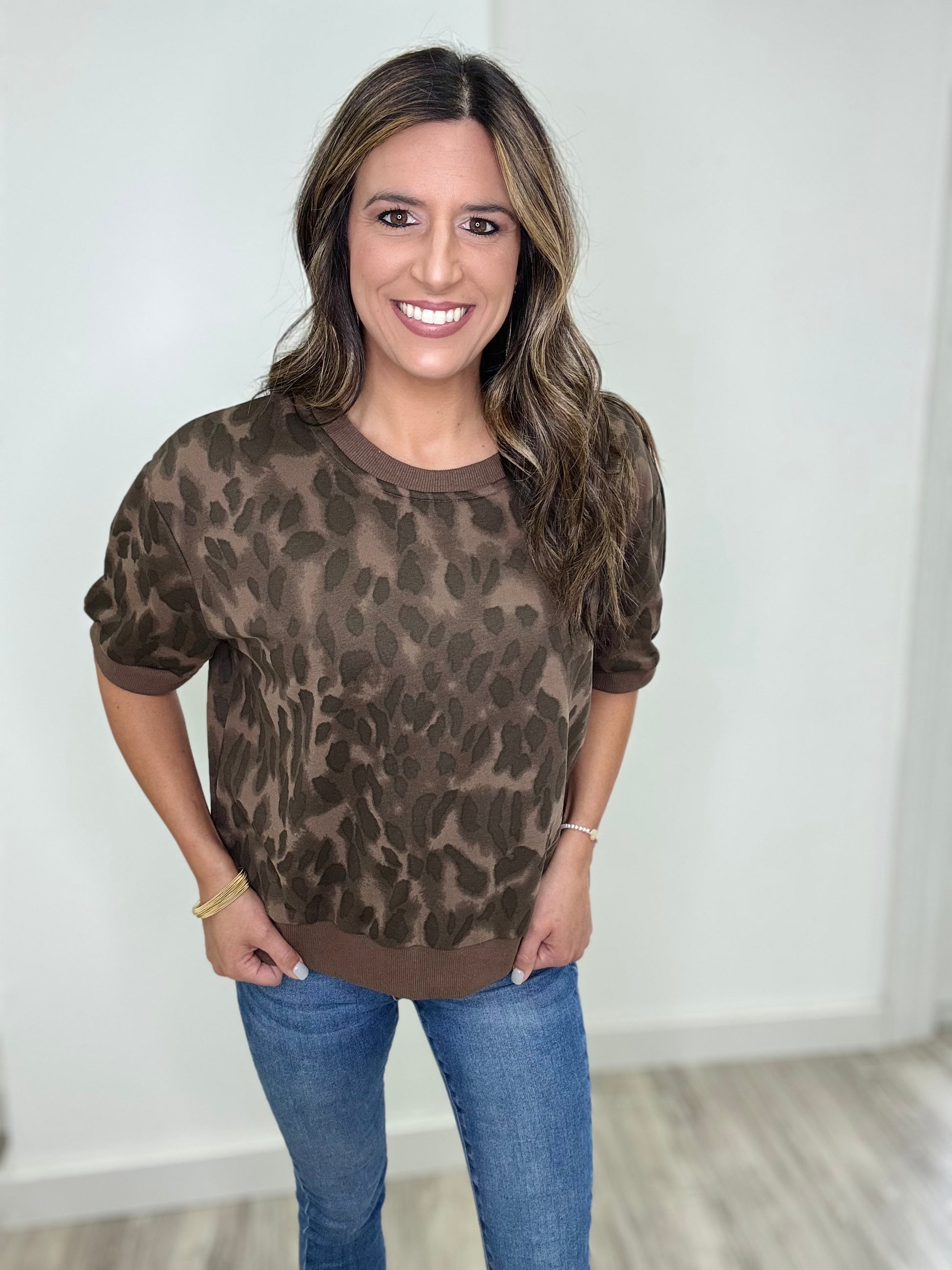 This playful leopard print top is a must-have for girls who love a wild touch to their wardrobe. Featuring a round neck and short sleeves, it’s accented with brown banded hems on the neckline, sleeves, and bottom for a stylish finish. Perfect for pairing with shorts or denim, it keeps things casual with sandals or sneakers but can easily be dressed up for the classroom. Embrace fun and comfort all day long!