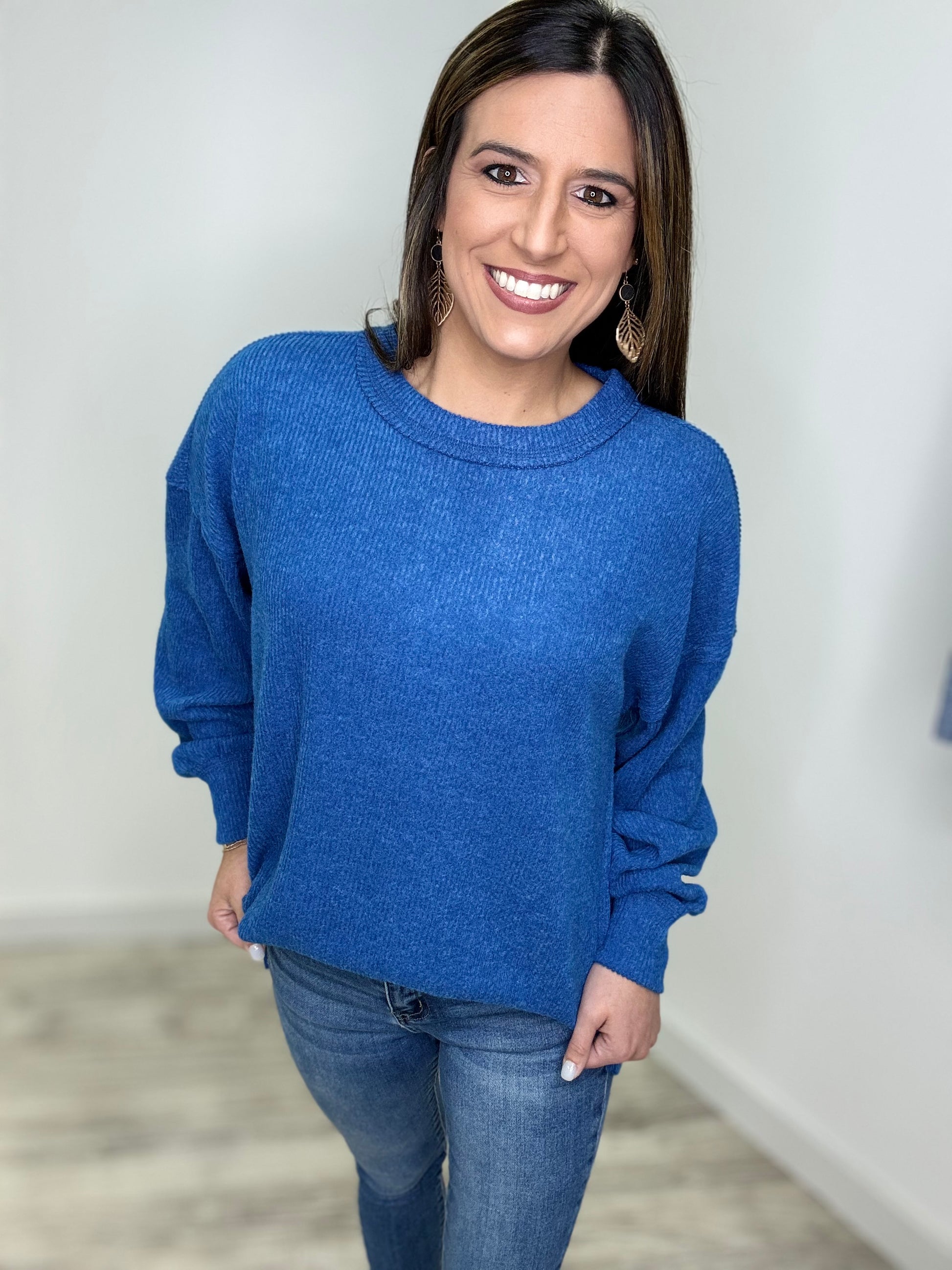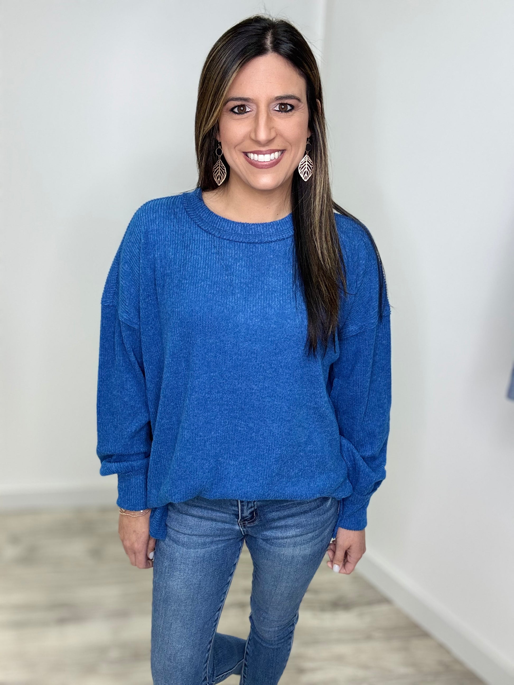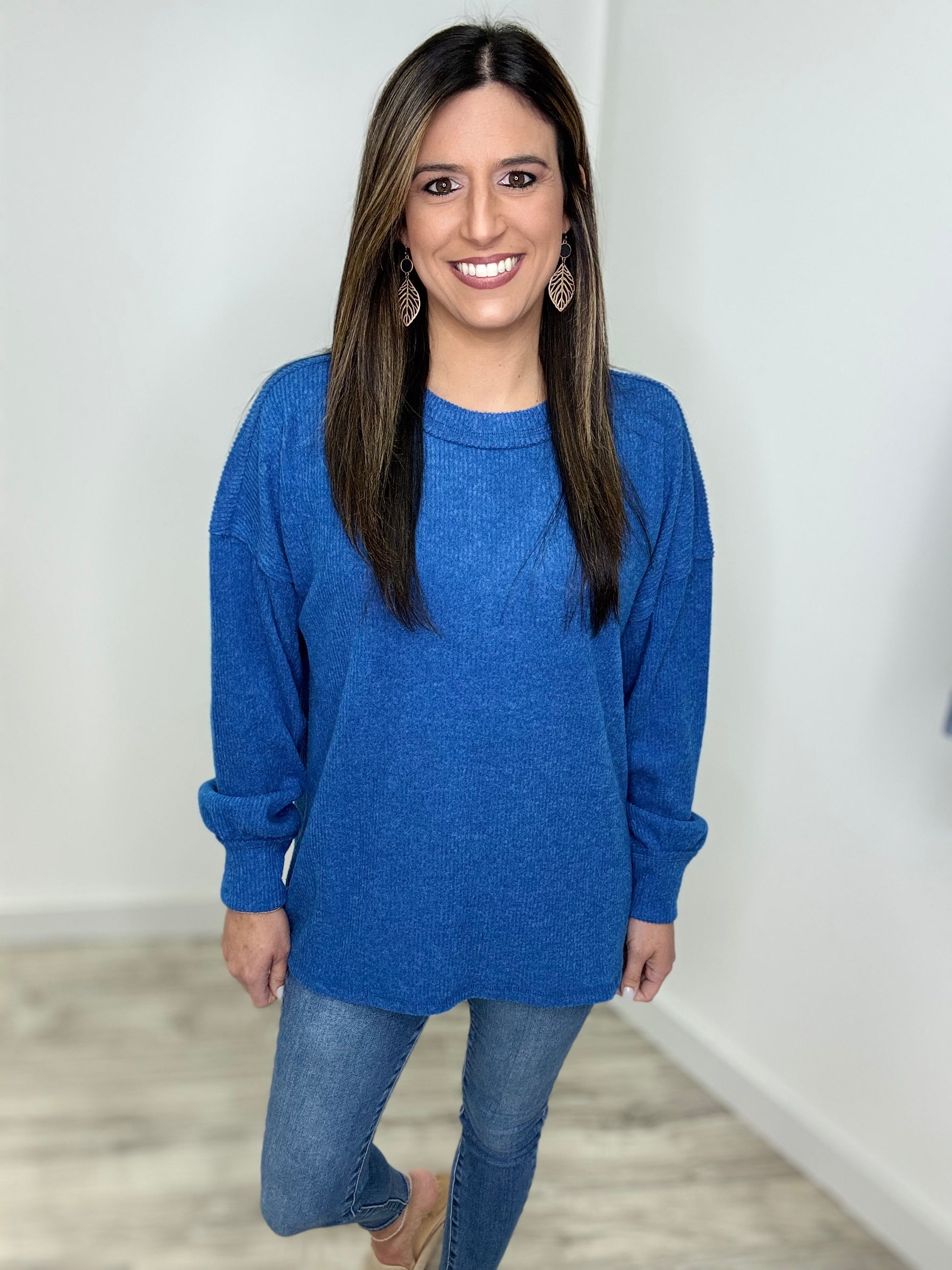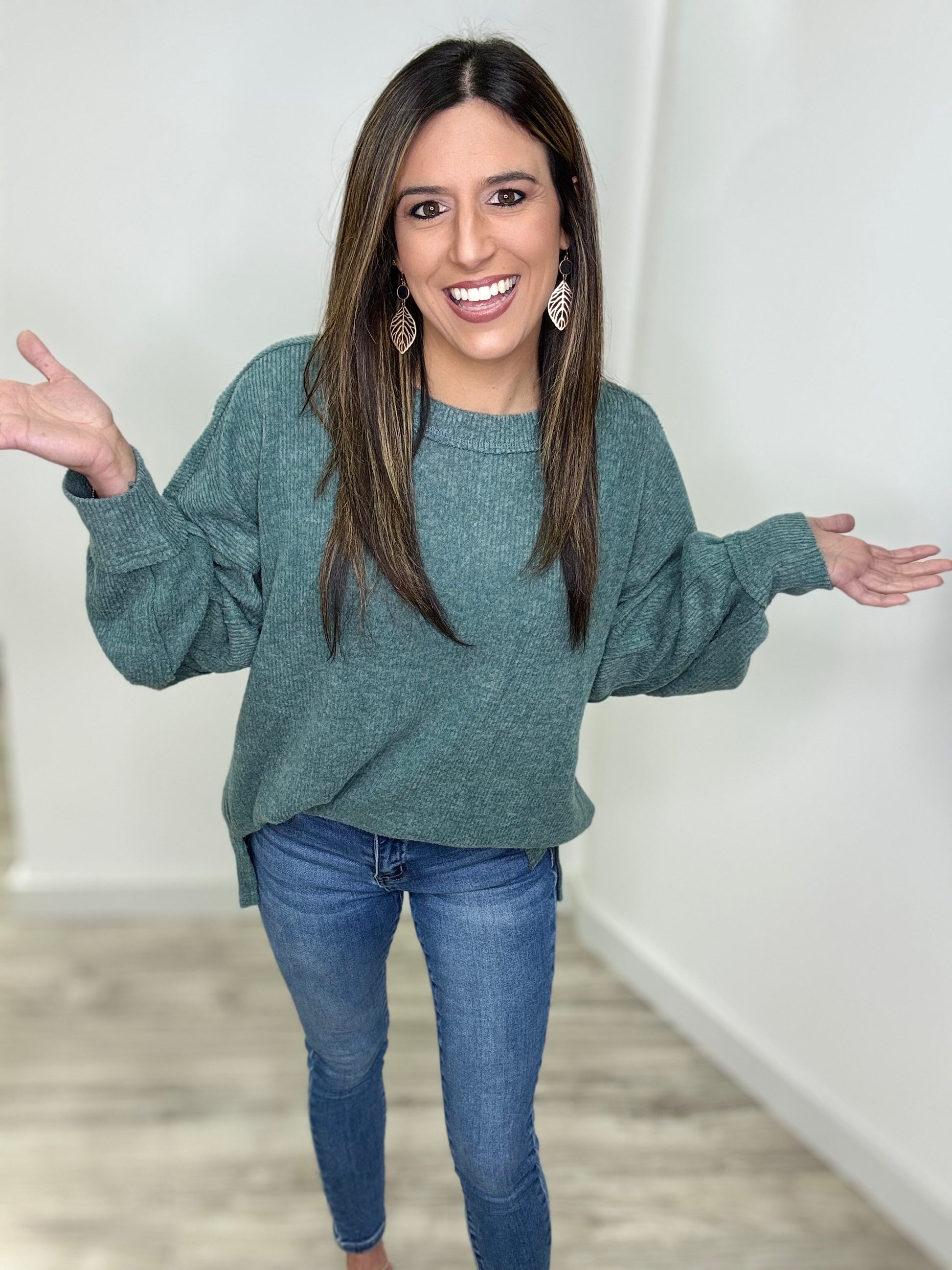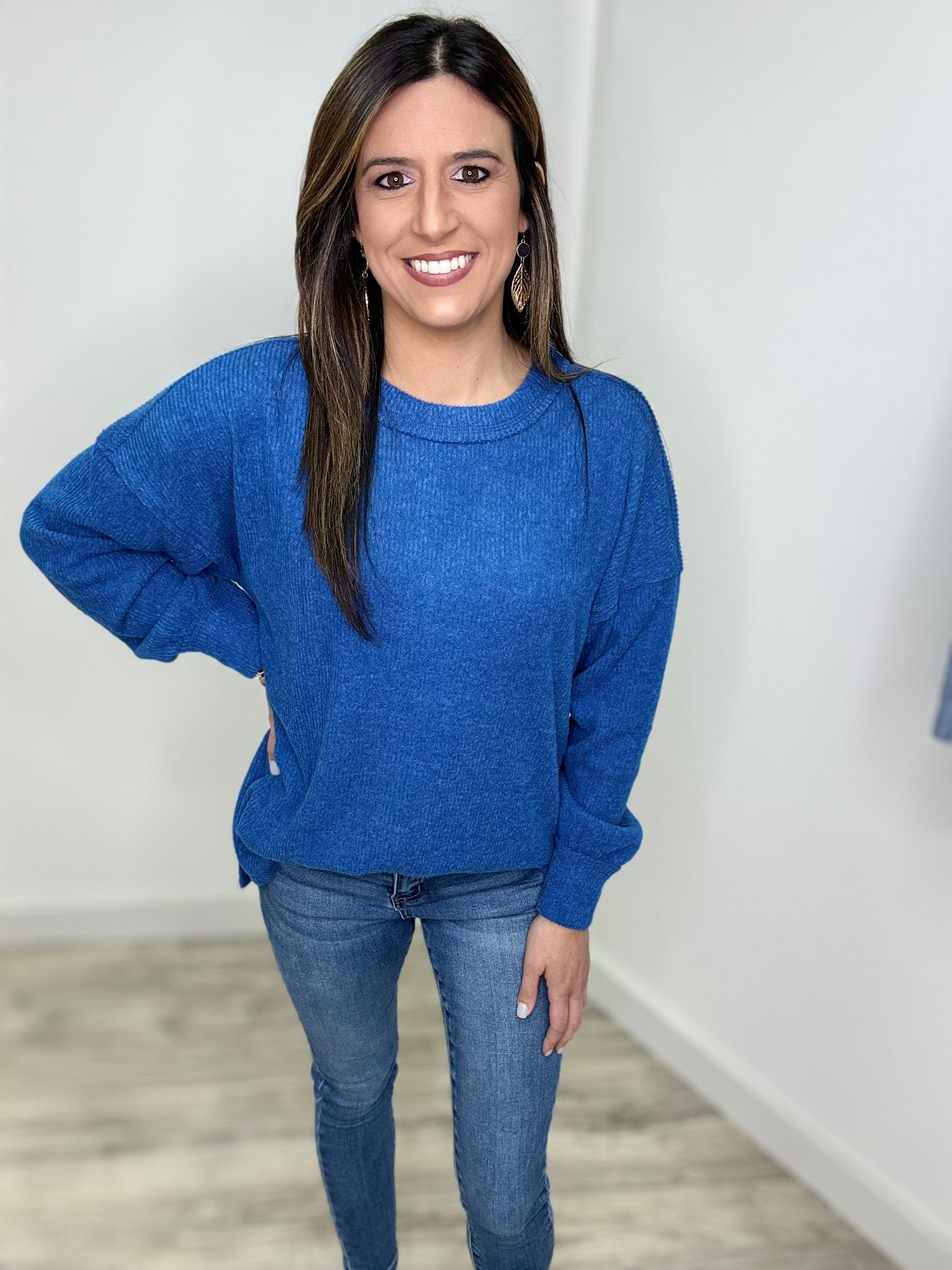 Get cozy as the weather cools with the Where To Top, available in playful blue and soothing ash jade. Crafted from the softest brushed ribbed fabric, this long-sleeve, round-neck favorite feels like a hug you’ll want to wear again and again. With a trendy drop shoulder and unique outside seams, it’s the perfect easygoing basic to freshen up your Fall wardrobe.